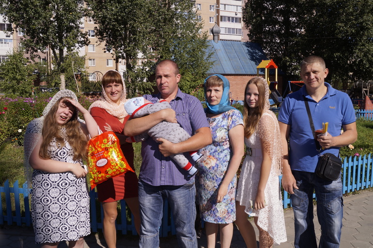 В середине августа были на крестинах. Муж стал крёстным у племянника Арсения)