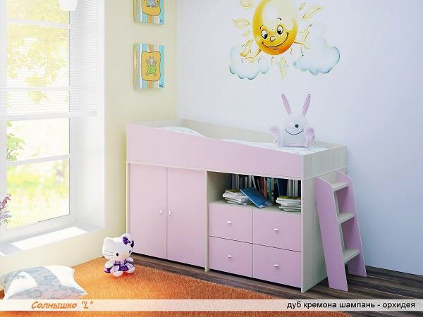 У меня кровать точно такая же, как на четвертом фото (розовая), только приличного цвета)) Дочь в нее переехала ровно в три года, не упала ни разу (если бы купили раньше, то раньше бы и переселили). Она очень вместительная в плане ящиков - переложили все из комода и еще место осталось. Очень спасает ящик для игрушек. Удобный стол. Очень рекомендую!