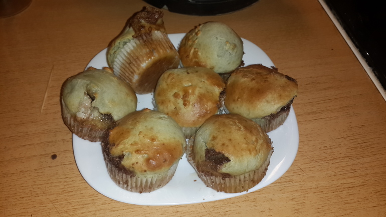 Приятного аппетита!На улице второй день дождь😢И решила я сыночку напечь кексиков))да еще и с нутеллой)