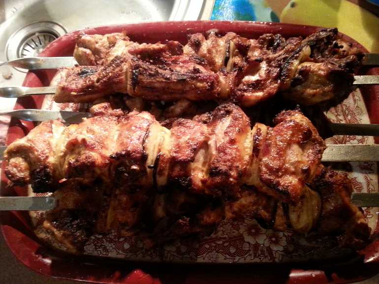 А это вчерашний куриный шашлык, мы ездили в гости к родителям мужа. Было очень вкусно!