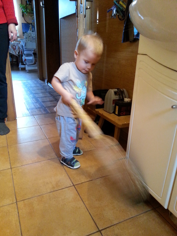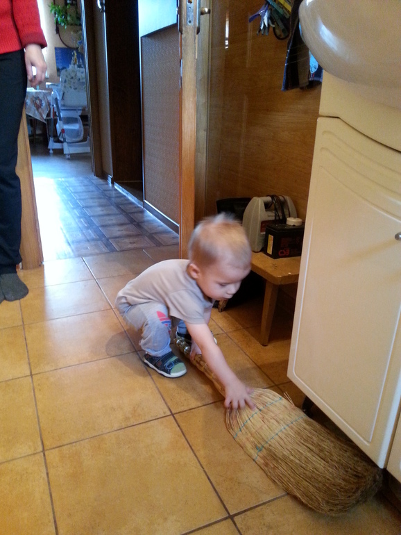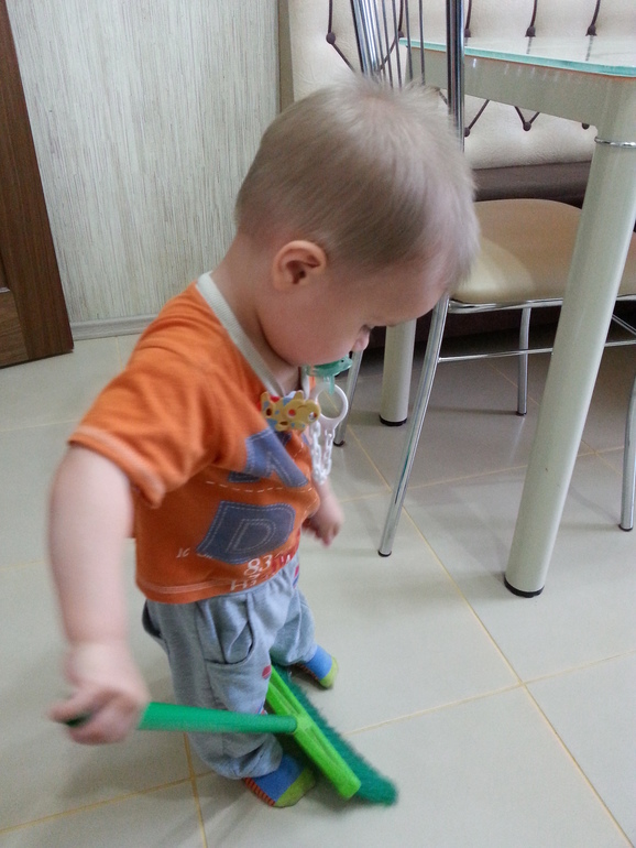 Так же у нас растет маленький помощник, очень любит ходить с веником и шваброй по квартире, так сказать, наводит порядок))) При чем не только у нас, но и у бабушки с дедушкой)