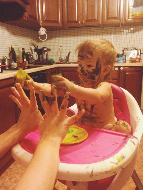 Рисование!!! Ооо! Это наше всё! Кашей не корми - дай порисовать, утром, днем и вечером))) Со старшей сестрой отрываются по полной программе, рисуют уши, нос, лоб, щеки, руки и живот - изучают части человеческого тела через рисование)) друг на друге))) когда пальцами, а когда и палитрой по носу повозить удастся)) художницы мои