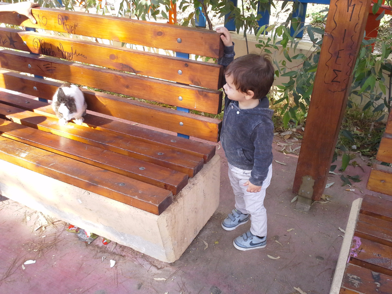 Но несмотря на это как только мы пришли в сад, начал все там активно рассматривать.