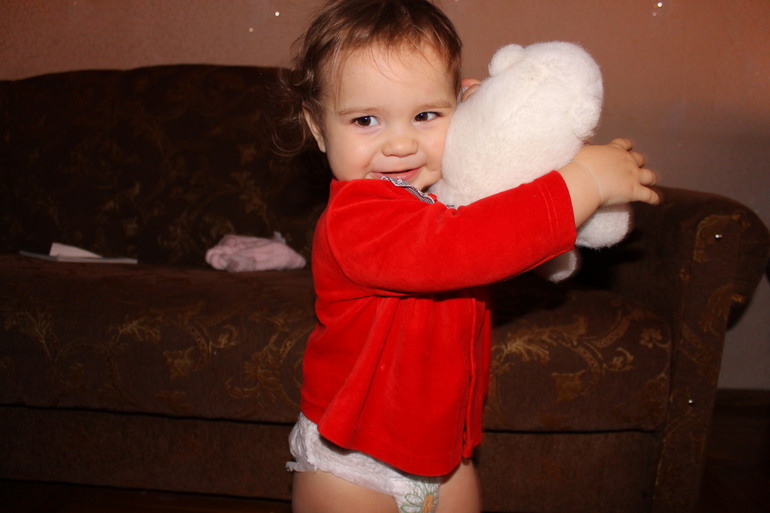 Этот месяц у нас ознаменован любовью и нежностью. Подходит К самым близким и к подружке своей и обнимает и целует и при этом издаёт звуки такие типа тает от нежности (это не передать словами)😇😇😇. Подружка наша младше нас на 2 недели и такая Дюймовочка,так Алиса сзади подходит и за шею начинает её "душить", точнее обнимать и каждые 2 секунды целует. Меня после ванны с диким восторгом МОКРАЯ обнимает и целует тоже с такой силой,что я удивляюсь откуда столько энергии😊. При этом она нас с такой нежностью называет Маааама,Пааапа😇. Счастье😘