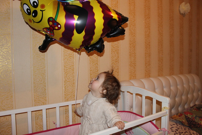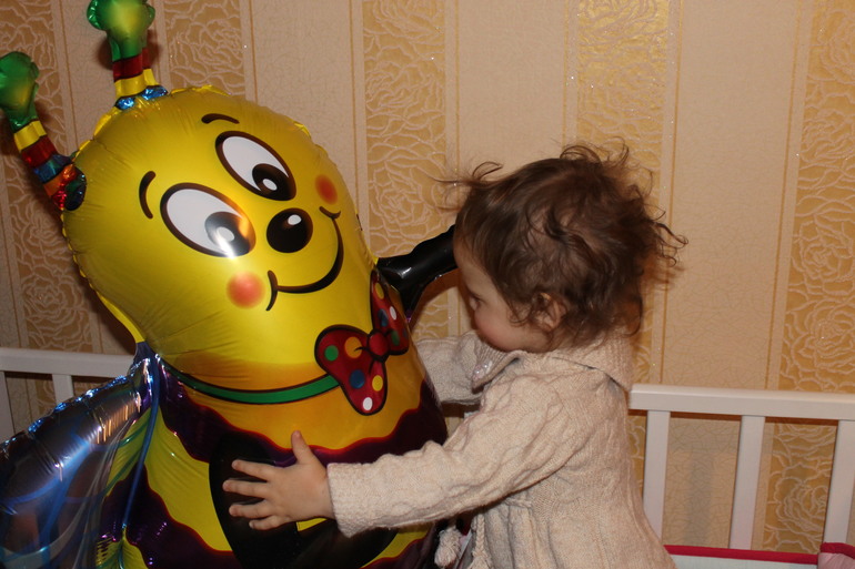 Эмоции зашкаливают, бабушка с дедушкой принесли шарик. До сих пор бегает с ним