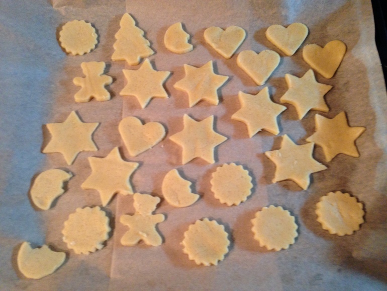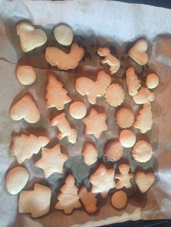 Хочу к новому году сделать бабушкам и дедушкам подарки в виде печенья, упакую в жестяные баночки икея ( такое как на фото, только буду украшать цветной глазурью). Печенье я не пекла очень давно, можно сказать первый опыт, тренировка. Это песочное тесто, рецепт брала тут на ББ у Лизы. Первую партию слепила сама: