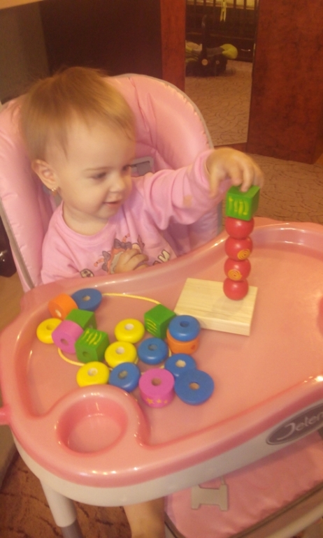 Юлю легко заинтересовать в игре ,в плане играя учу убирать за собой,если раскидает прошу убрать,она не понимает,то ли не хочет это делать ,приходится выдумывать,эти игрушки спать хотят,эти книжки,хотят в домик уйти(убираем что в ящики выдвижные,что-то по корзинам)Ну и все в этом духе.очень уважает всякие там игрушки где надо одеть-продеть на колышки,сложить пирамидки,начали с ней по цветам раскладывать,я ей один ряд чего-нибудь выложу, она продолжит.Но пока у нее нет понятий типа "Юля это положи на красный,это на желтый и тд. Она понимает "Юля А давай найдем такой же цвет,а давай положим сюда и проговариваю сама цвет.Любит своих пупсов,один разрисован,новых не покупаю.Во-первых от старшей много хороших писающих-плачущих,во-вторых ей тяжело их таскать.Играет в маленькие !Обожает РИСОВАТЬ и все этим сказано,рисует везде(в том числе на себе,на мне ,папе,стенах,холодильнике и тд.)