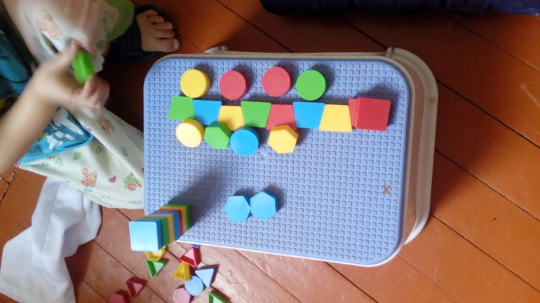 можно попробовать играть традиционным способом, искать домик для каждой фигурки, а можно проявить фантазию и построить, домик, светофор, поезд и много другого.