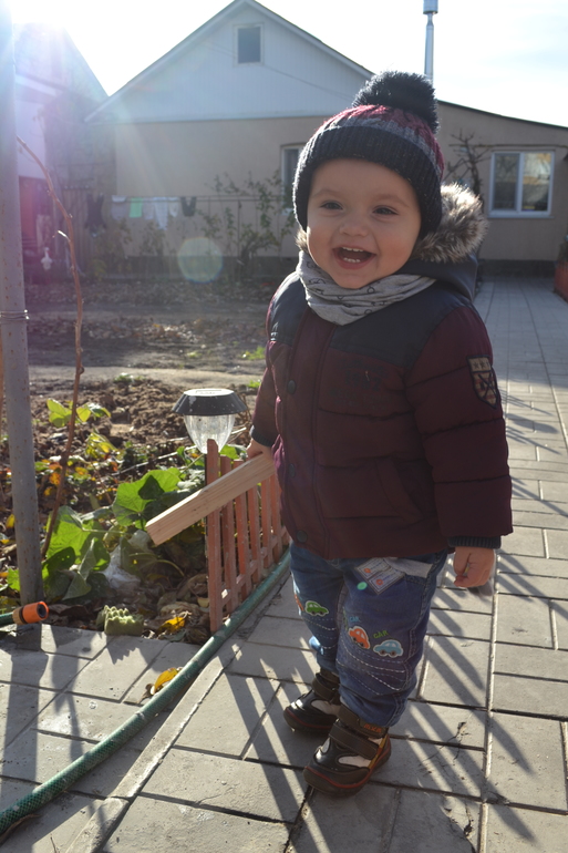гуляя в парке, бывает очень самостоятельным, за руку со мной идти часто не согласен, топает себе сам. Когда похолодало, начали гулять с чаем в термосе и соломкой. Вроде беру ее для Тимура, но почти всю съедают голуби)))