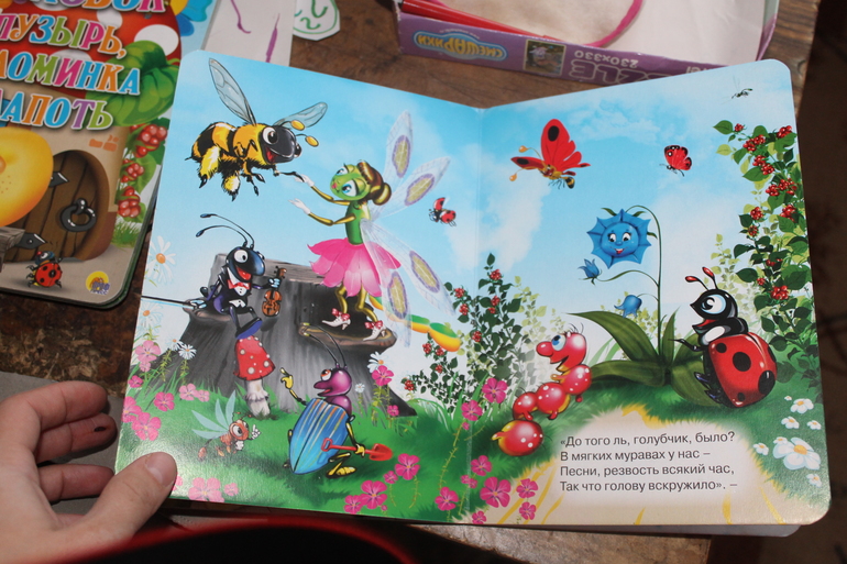 В последний раз Митя вёл себя настолько дисциплинированно, а народу было так мало, что его от нечего делать записали в читальный зал. Вынесли несколько книжек-картонок, панорамку, с кармашками и прочими прибамбасами. Митяй очень цивилизованно уселся на маленьком стуле и разодрал в клочья картинку-вставку вполне себе мирно слушал, что я ему читаю. В конце концов к нам присоединился и Серёжа, так что пришлось читать поочерёдно то одному, то другому. Семейная идиллия, так сказать.
