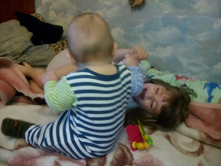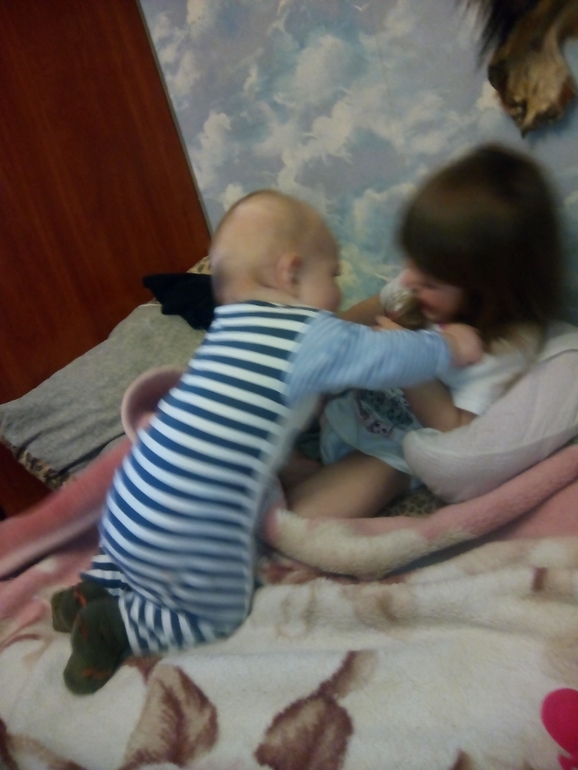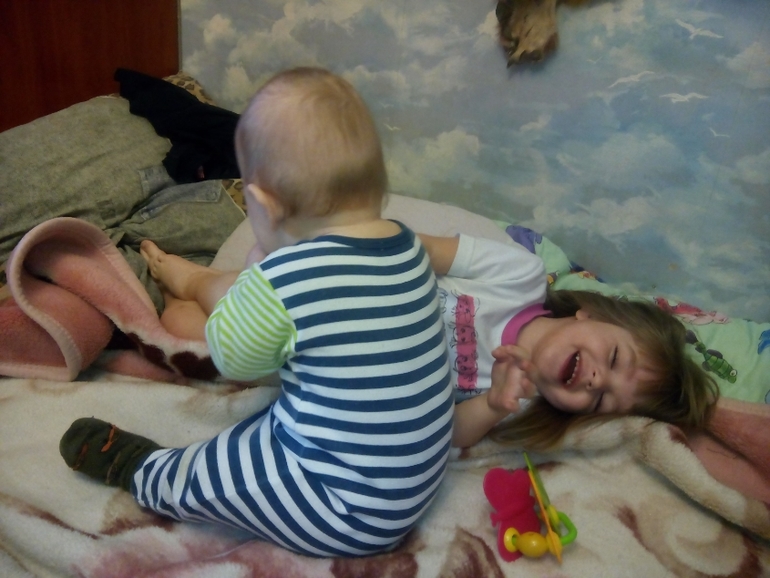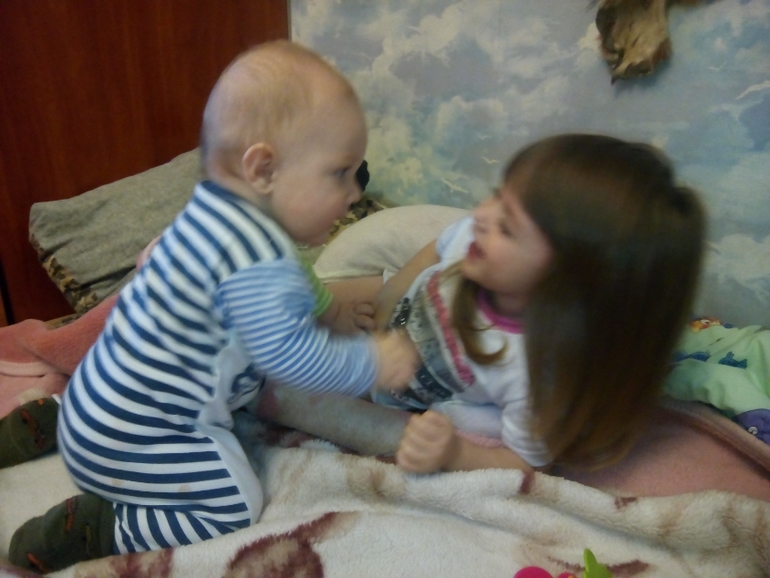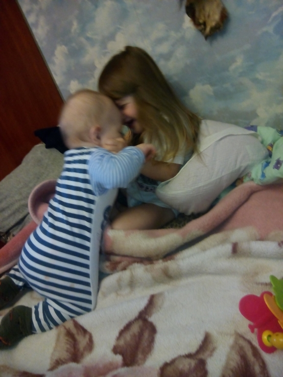 ДружбаНаконец-то, у Кристи прогресс, в плане брата. Мы уже не визжим на него, а когда он ползет к ней играть - ржет!! И он смееться...это такое зрелище...