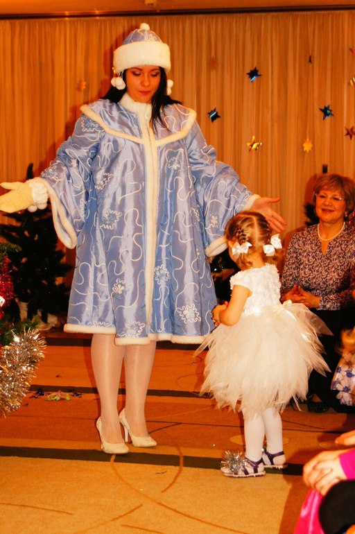 Детские сады, клубы, центрыНачну с того,что прошел утреник просто потрясающе!!!Группа ГКП номер 7 "Смородинка ")))Все организовали с такой теплотой и любовью,что растрогали до слез) Воспитатели у нас золотые. Вот, что значит опыт и любовь к детям. Спасибо заведующей. Надо отметить ОЧЕНЬ ТРЕБОВАТЕЛЬНОЙ заведующей. Она здорово организовала эту группу (такая группа в саду первый год), занятия регулярные,гуляют с ними,2 воспитателя на группе. В общем почти как полный день)) Утреник был с родителями.Мамы с детьми стояли в хороводе,а папы,дедушки,бабушки и кто еще пожелал прийти сидели в зрительном зале. Я была снегурочкой))моя снежинка меня узнала,конечно,но вела себя достойно, на руки не кинулась, на ноге не повисла) Кое кто из детей подхныкивал, но истерик не было. В этом и прелесть получилась) родитель сразу хныкающего ребенка поцеловал, пообнимал и все тихо,спокойно.Они как котята бродили вокруг елки, кто как мог танцевал и пел. Милота в общем)))