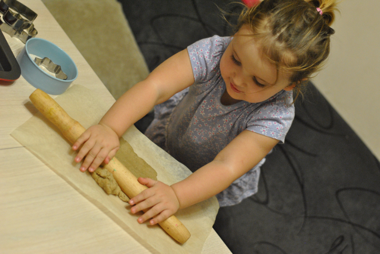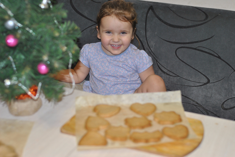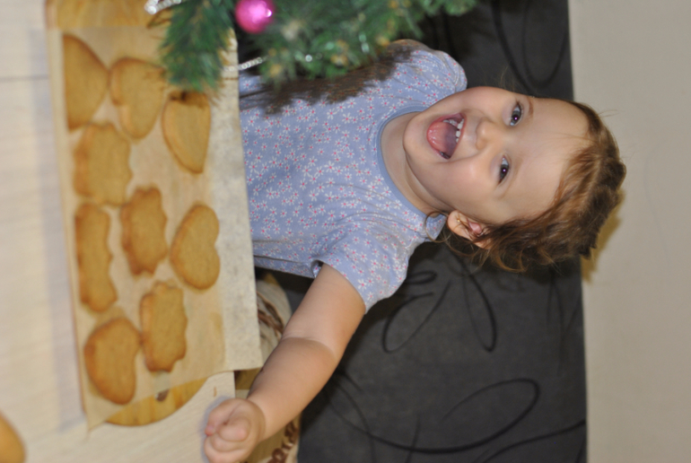 Растем и развиваемсяЯ просто не могу не поделится фотками) Кира делала новогодние пряники в подарок бабушке, я ей показала как, она сама брала тесто, раскатывала (я докатывала до нужной толщины и исправляла косячки), она делала формочки, убирала излишки и потом мы запекали. Она возилась час!!! Двухлетний ребенок, с огромным усердием, без баловства час пыхтел над печеньками! Я в шоке)) Завтра будем с ней украшать))И посмотрите на ее эмоции! Искреннее неподдельное детское счастье!