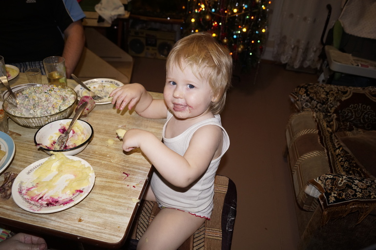 1 января нашей мышке исполнилось 1, 9 года. Растёт человечек. Писать обо всём не буду. Всего не упомнишь. Лучше фотки покажу. Фоток всё меньше... вредничает и не даётся))))