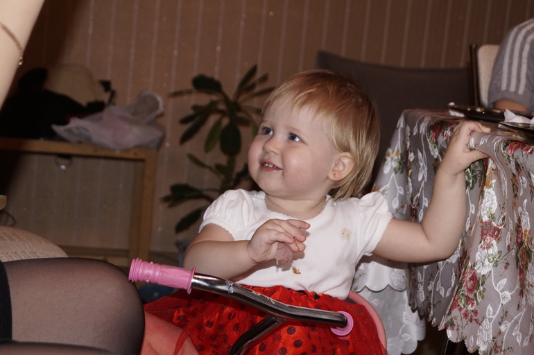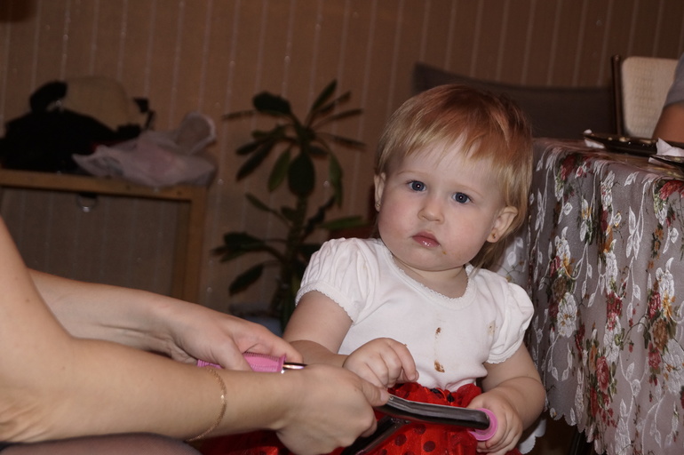 В первый раз мы ночевали не дома. Переживала я, что плохо спать будет.... или перегуляет... потому что днём спала всего 1,5 часа....но нет... она меня приятно порадовала. За окном бомбили петарды и хлопушки, а моя мышка вырубилась через 10 минут как легли и вполне хорошо спала всю ночь. Утром проснулась в 8.40... в своё обычное по графику время. Умница моя!!!! Горжусь ею!!!!!