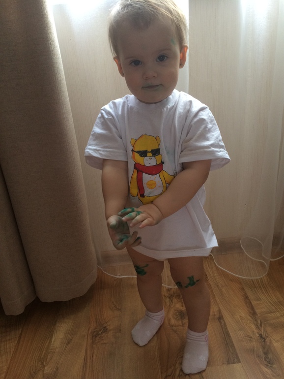Легко толкает в сортер фигурки в нужные формы. любит рисовать, правда,по большей части на себе) держит ручку/карандаш/фломзик как учат в школах, опять же, никто не показывал, что надо правильно держать.