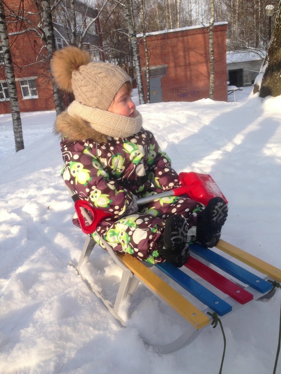 Вот пару дней назад бабушка подарила Максу санки, так стал вроде получше гулять( ттт). И стал ходить на улице, а потом в санках едит.