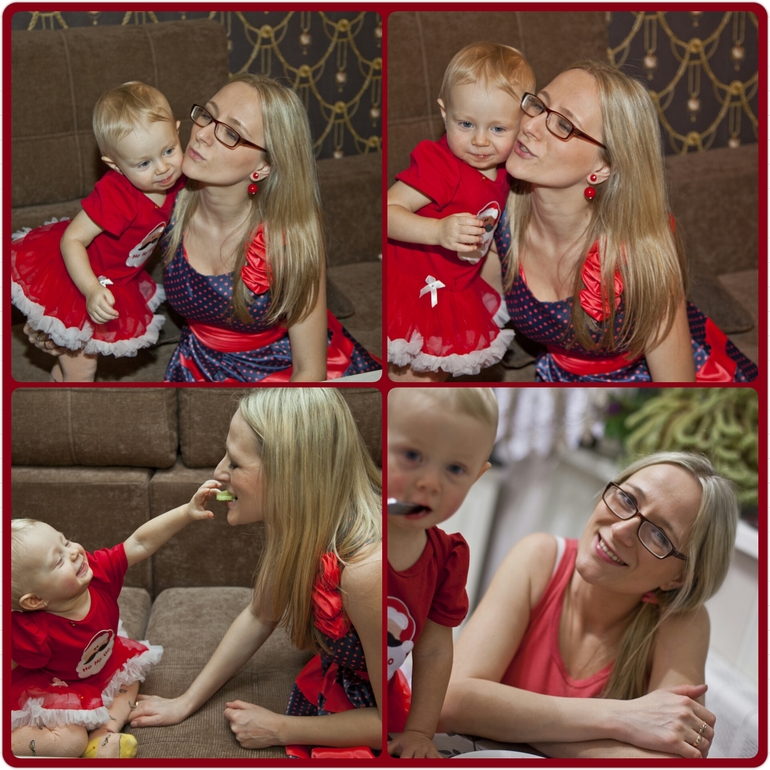 Растем и развиваемсяНе писала про наши год и семь,хотя у нас произошел серьёзный скачок. Начну с нового года. Лиза встречала его вместе с нами,а тщетно пыталась ее уложить спать,но она решила,что не может пропустить веселье и речь Путина. В 23.45 я решила,что пора вернуться за стол и взять ее с собой. Встречали мы с мамой мужа,за накрытым столом,но очень тихо и по спокойному. Лиза танцевала и радовалась. К часу я ее уложила,а к 2м и сама к ней легла. Смогли запечатлеть несколько хороших фото,но праздничные колготки Лизы не дожили до этого момента,прошу не обращать на это внимание