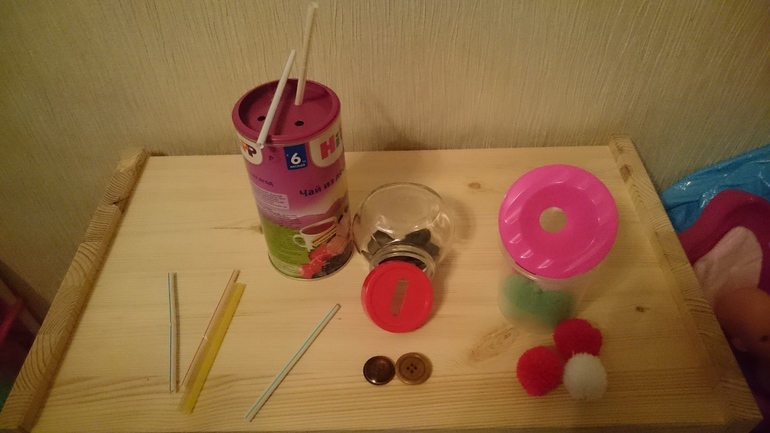 А игру в наперстки сами соорудили? У меня муж играет с дочкой он стаканчики берет и прячет игрушку и ими двигает, дочка то же визжит.