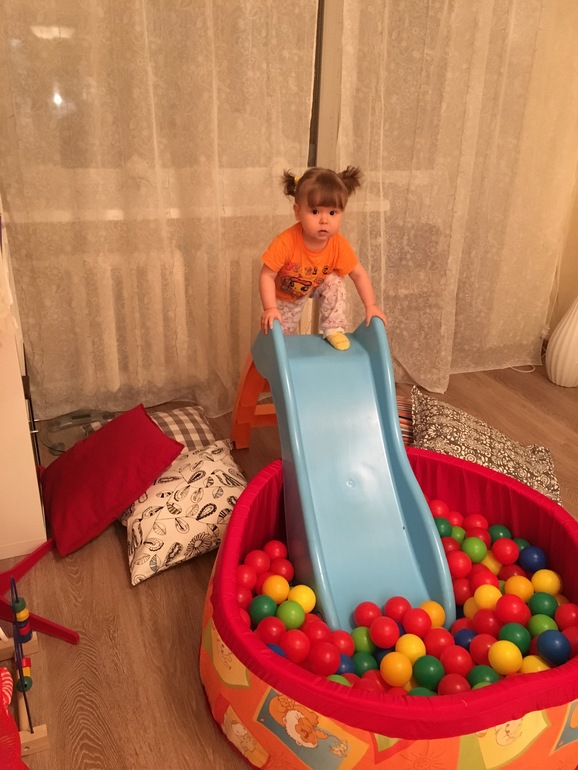 Мия. Мия очень изменилась! Во-первых, дома у нас идёт активная стадия отлучения от груди уже как месяц и во-вторых, лезут клыки. Отлучение начиналось в спокойное мирное время, очень нежно, плавно и без резких стрессов. Нет, мы конечно с мужем, однажды решили отлучить прям сразу 🙈, но когда весь наш многоквартирный дом два дня не смыкал глаз вообще, то мы поняли, что не самые умные на свете. Стали следовать инструкциям по плавному отлучению. Сейчас на стадии, когда грудь она ест, только когда просыпается ночью на перекус. В остальное время, она про неё теперь и не вспоминает. Осталось дело за малым, но тут полезли зубы. У нас их всего 8!!! И вылезают клыки! Со всеми картинкам гуляющим в инете по количеству и порядку зубов, мы вообще никак не совпадаем. Даже первые зубы у нас вылезли верхние. Я как-то особо не парилась, но клыков я совсем не ожидала😳. Мию словно подменили. Она стала истерить. Капризничать. Бунтовать. Воевать. Драться. Вечно возмущаться. Спит ужасно. Укладывается только верхом на мне. ТОЛЬКО на мне! Укачивать могу, и 10 минут, и 2,5 часа-это как повезёт. Режим весь полетел к чертям! После того, как я все время жила по режиму и знала до минуты, что и когда мы будем делать, для меня очень сложно жить в неизвестности и в вечной мобилизации. Но знаю, что как только она потёрла глаза и в течении полу часа её срочно не уложить спать-потом о сне можно забыть на долго. Будет истерика. А это очень проблематично, если ты не дома. Спит мало, плохо. Постоянно давится слюнями, ворочается, стонет, кричит и просыпается. Сейчас не могу понять заболела она или зубы так её кошмарят. Сопли текут постоянно. На улице стала драться и отнимать игрушки у детей! Если не удалось, начинается дикая истерика. Никто не может узнать этого бывшего Божьего одуванчика!! Бабушки сетуют- избаловали! Не знаю, как бы я не настраивалась себя утром, день все равно заканчивается моими слезами😔. Мы собираемся с ором, мы выходим с ором, мы гуляем с ором, мы заходим домой с ором ( а чтоб зайти домой я должна поднять её,и мешок с игрушками, и санимобиль, и подстилки на санки на пятый этаж), а гуляем мы два раза, укладываемся с ором и тд и тп. Обеденный сон-раньше был единственным оазисом, теперь либо просыпается каждые 10 минут и снова укачиваю, либо спит только на мне. Как только укладываешь-орёт😞. В магазин зайти не возможно! Муж в командировках. С ужасом понимаю, что я в с состоянии какой-то уставшей депрессухи. Раньше хоть на час ходила в зал заниматься, сейчас не занимаюсь уже два месяца, да помыться то не могу нормально, че уж там;) Она очень уж "маменькина" дочка! Только МАМА! Всегда. Боится даже из поля зрения меня упустить. Очень и очень хочу, чтоб это военное положение уже закончилось и я смогла выдохнуть, хоть чуть-чуть выспаться и отдохнуть👨🏿. На таких "радостях" жру всякие сладости как не в себя. И уже пофиг, что скоро наберу свои сброшенные 10 кг жира, лишь бы крыша не поехала😁. А вообще и у Мии аппетит хороший! Ест часто и никогда не ест одно и тоже дважды😭. Все понимает, многое обьясняет, говорит четко слова мало. Любит Ля-ля и Машу с Медведем. Но после Маши её очень уж прет, поэтому включаем их в редких случаях. В основном наши советские. Читает книги на своём языке, много рисует каляки. Ест сама, потом отмываю её и переодеваю. Любит сыр, перепелиные яица и цитрусы😎. Ходит на горшок, но маленькие 