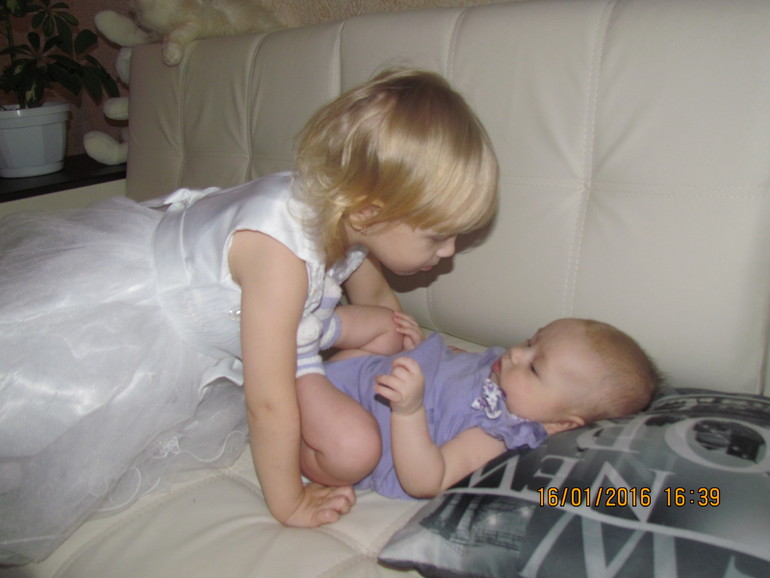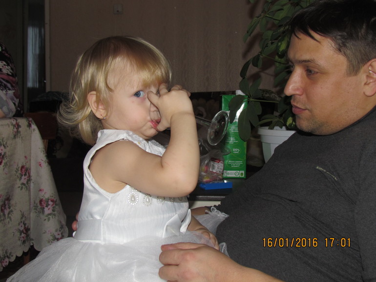 Растем и развиваемся16 января, нашему атаману в юбке ,а то есть Лерусе,исполнилось 2 годика)))Давно про нее ни чего не писала.Это вихрь, ураган, не управляемый, избалованый папой и мой любимый ребенок ) Растет она у меня быстро, честно скажу, что времени на нее не хватает, но стараюсь всем уделять свое)))Она у нас папина дочка без папы не может, даже во сне папкает,везде с ним,чтобы он не ремонтировал,она с ним,вообщем ей надо было родиться мальчиком)))В 2 года делали манту все хорошо, вес 14 кг. рост 90см,.Вобщем умеет все,кроме и это :