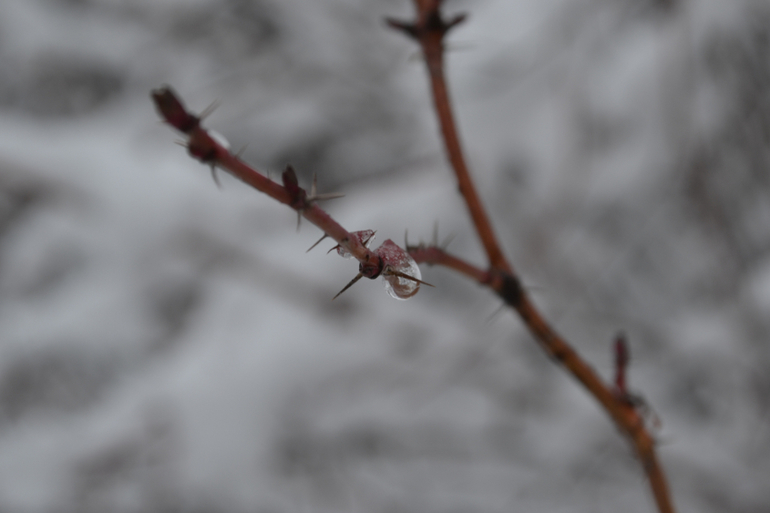 Ночью у нас шел снег. На кустах и деревьях повисло много снега... На улице тепло, но слякотно.... зато можно хорошо пофотографировать )) (остальные фото внутри)