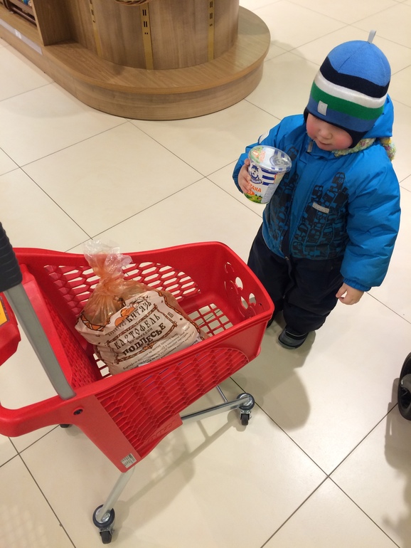 моя тоже любит "выбирать покупки сама". если зайти за парой товаров и на кассе никого не будет, то дочка как взрослая делает покупки, а если список длинный, то начинает баловаться и набирать в тележку все подряд))