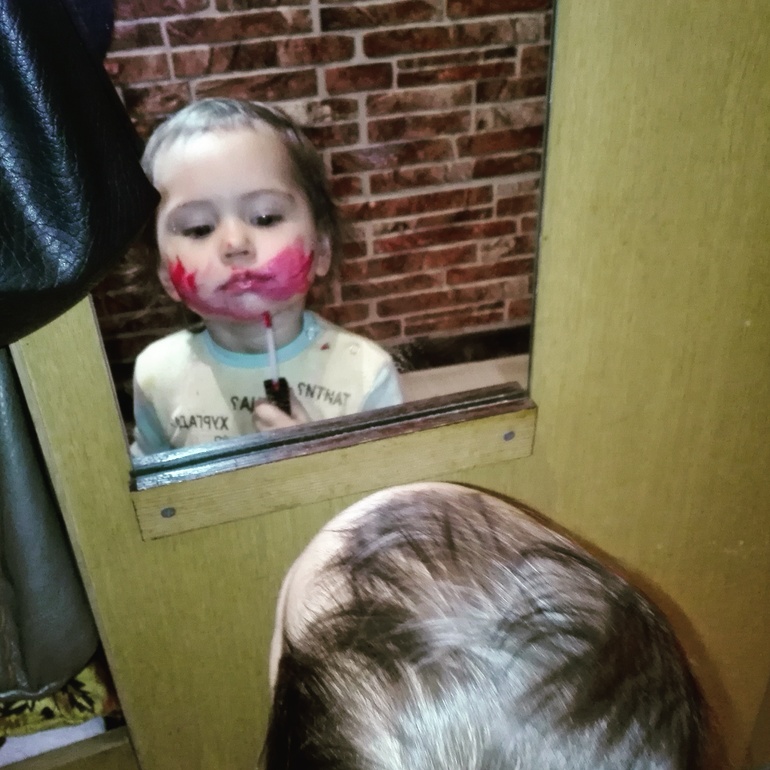 Девочки такие девочки) это в генах- лично я при мелкой красилась ну пару раз от силы, поскольку очень редко пользуюсь косметикой,даже банальным блеском))) а она ж именно губы красила)