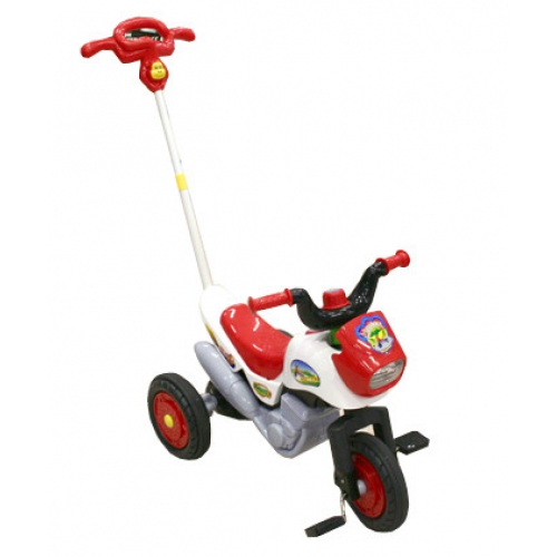 Идеальный вариант, по-моему мотоцикл с педальками и ручкой. Можно крутить педали, можно толкаться ногами или родитель чтобы вёз.