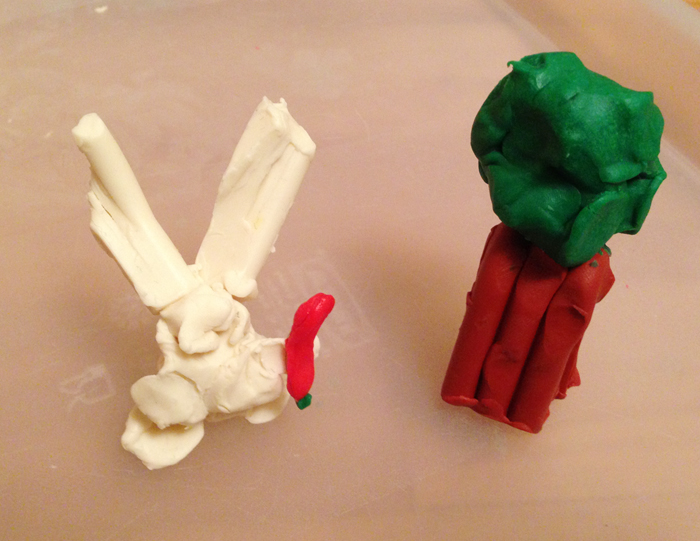 Но, несмотря на мою детскую психологическую травму и крайне, просто невероятно редкую совместную лепку, Алиса вчера слепила зайца с морковкой и дерево. Вообще без моего участия, наставлений, бдений и чтений книг «Лепка с малышом - 1001 способ развить вашего ребенка».