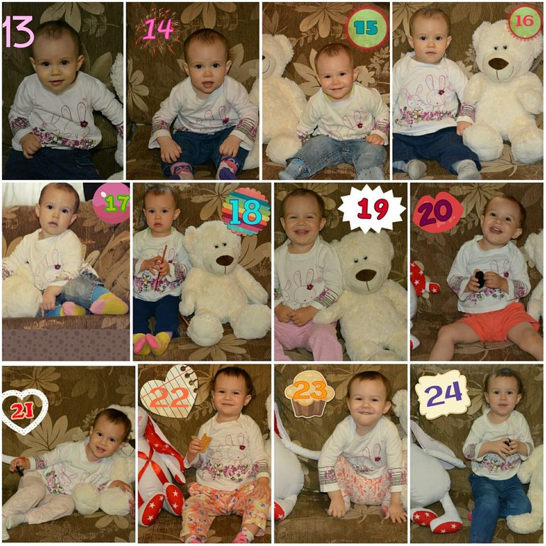 Растем и развиваемсяЯ тут недавно сделала коллаж второго года жизни Кристи, это таааак удивительно и невероятно!!! Каждый месяц друг от друга почти не отличается, но вот первый и последний - колоссальная разница!!!