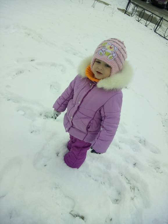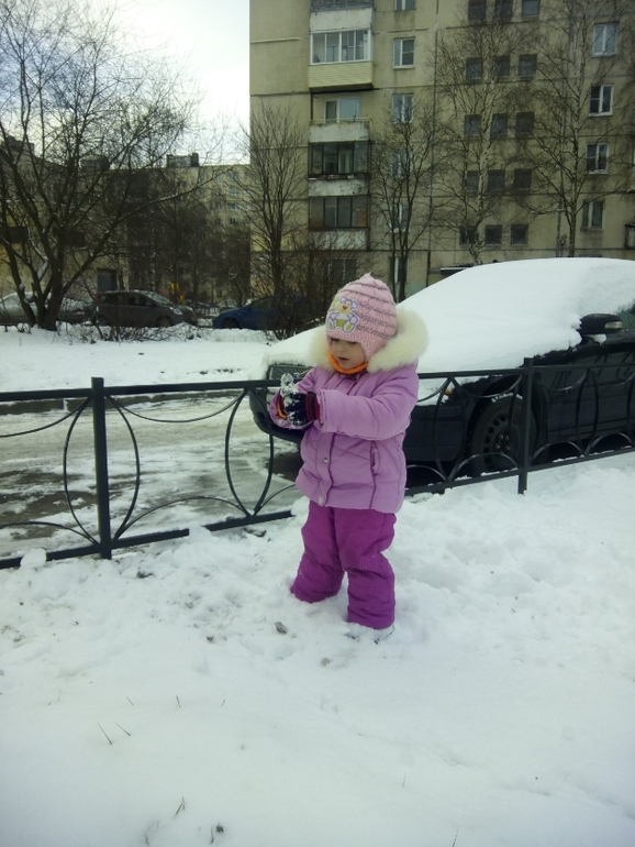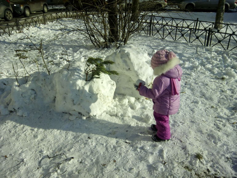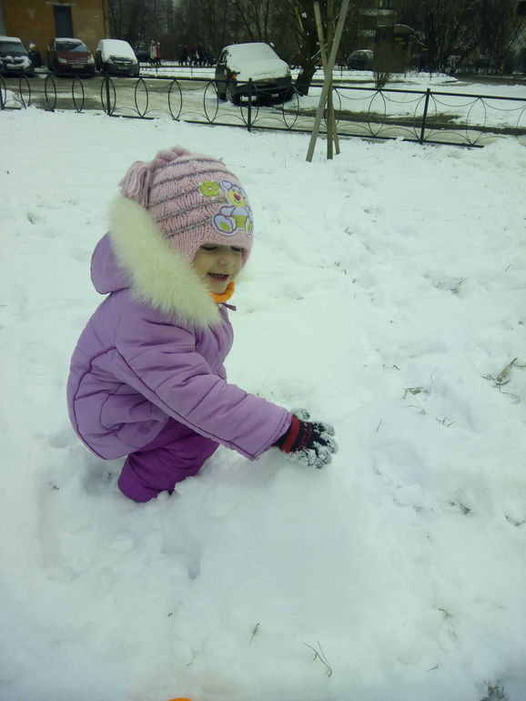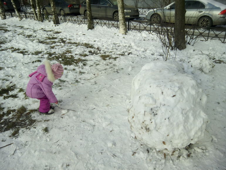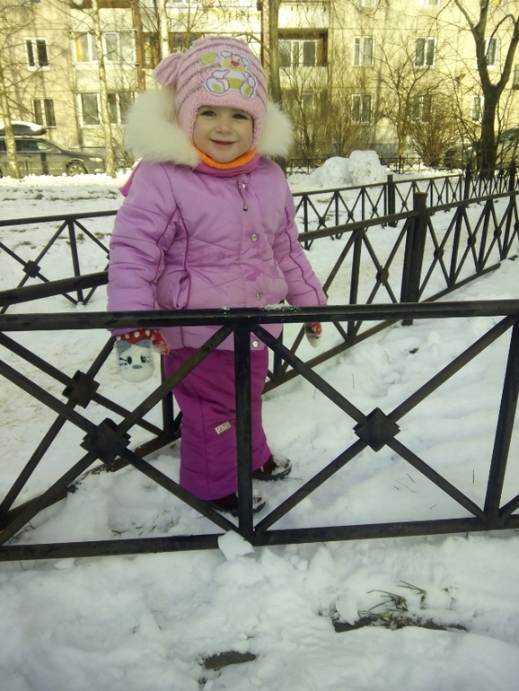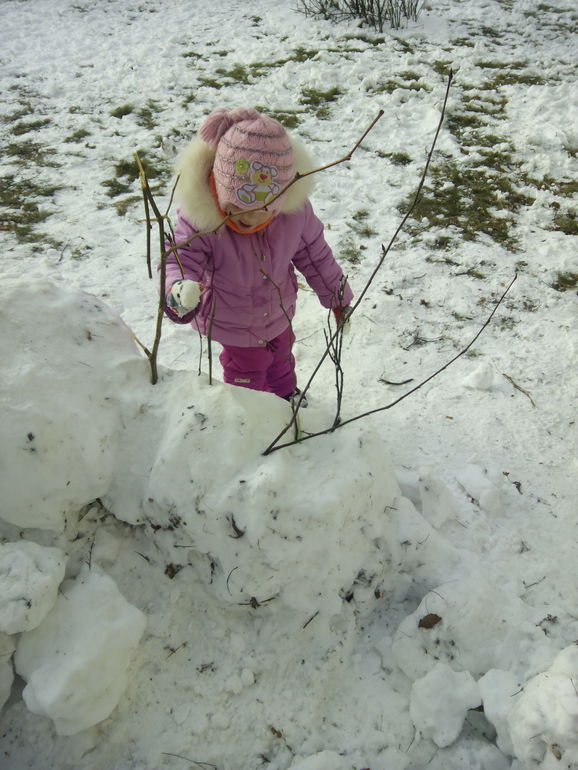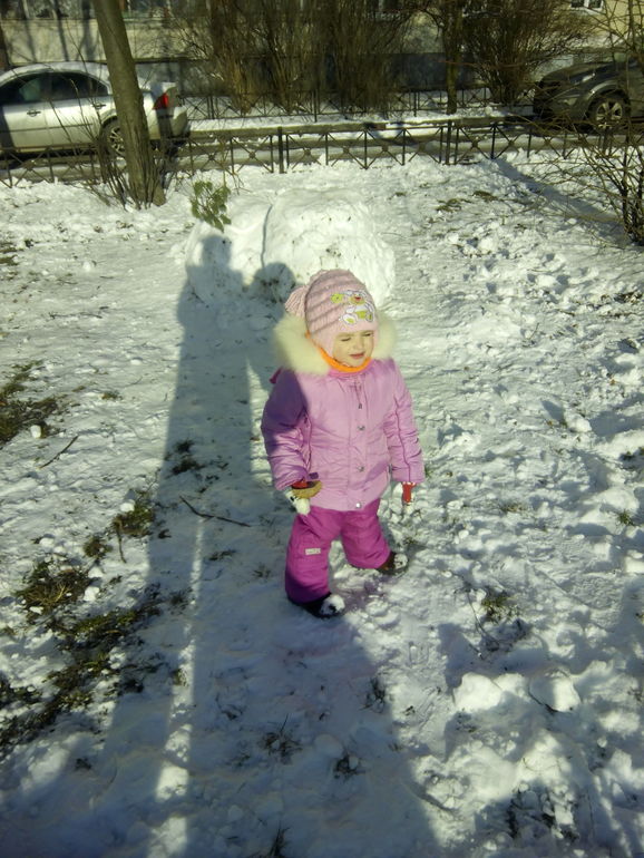... А с Кристи играли - нашли большие комья, наверно сломанный снеговик или крепость, втыкали туда палочки! Собирали комочки маленькие, топтали их, ну что еще придумать то...ггыыы...Слава богу - мало каталась на качелях, больше бегала...кстати 2 часа вчера гуляли...красотаааа...