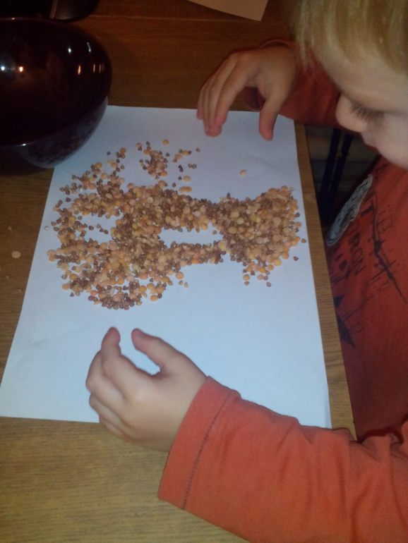 наши занятия мелкой моторикой с гречкой и горохом ))))