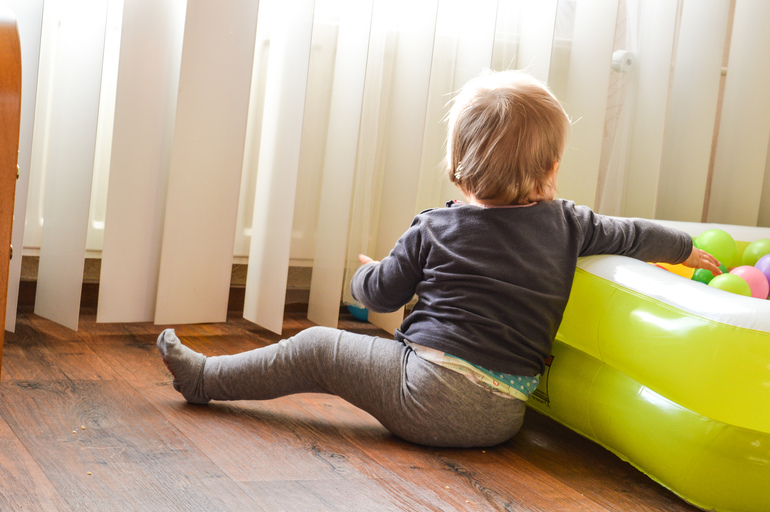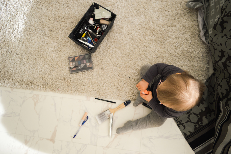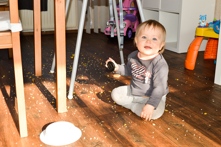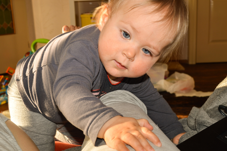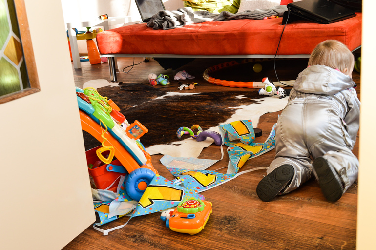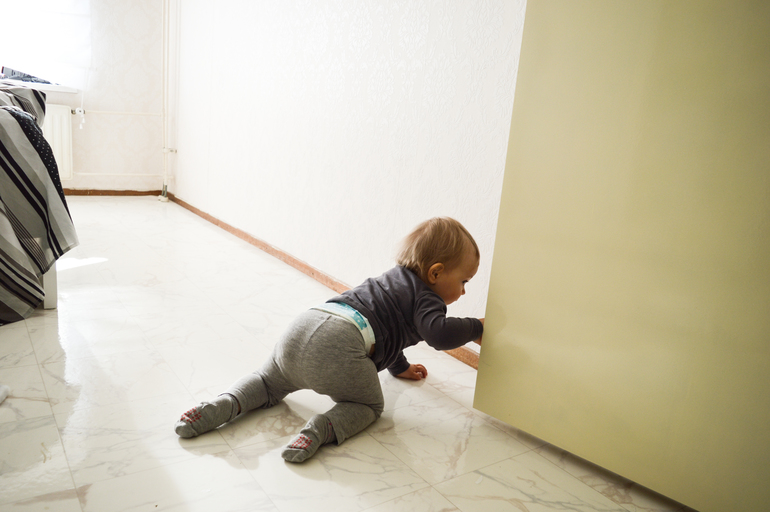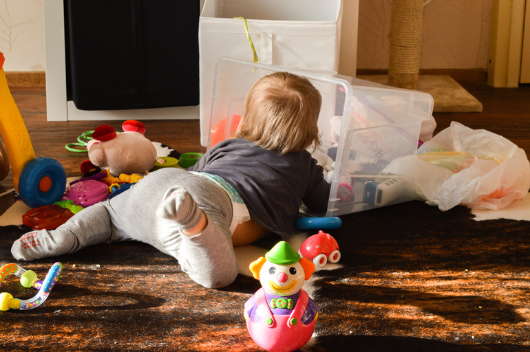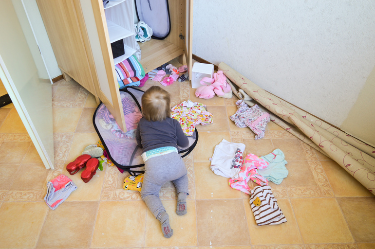 Младенец вскарабкался и готов наводить порядок! Но сначала нужно закрыть за собой: