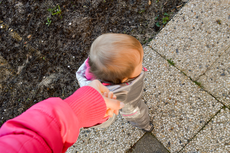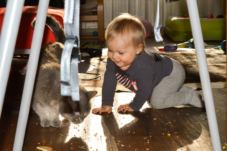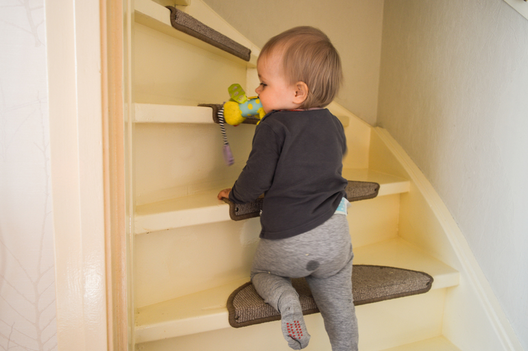 К слову, она уже давно научилась подниматься по лестнице сама, но мы всегда её страхуем.