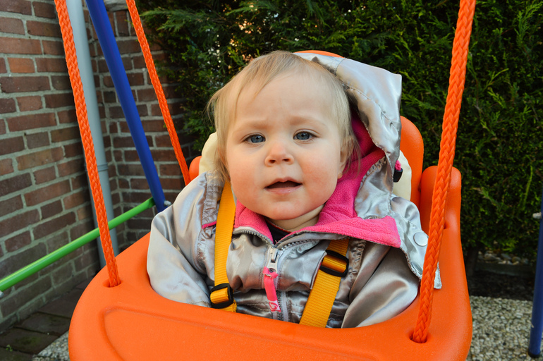 Коляску мама постирала, и она ещё не высохла, поэтому пошли тусоваться около дома. Покачали куклу :)