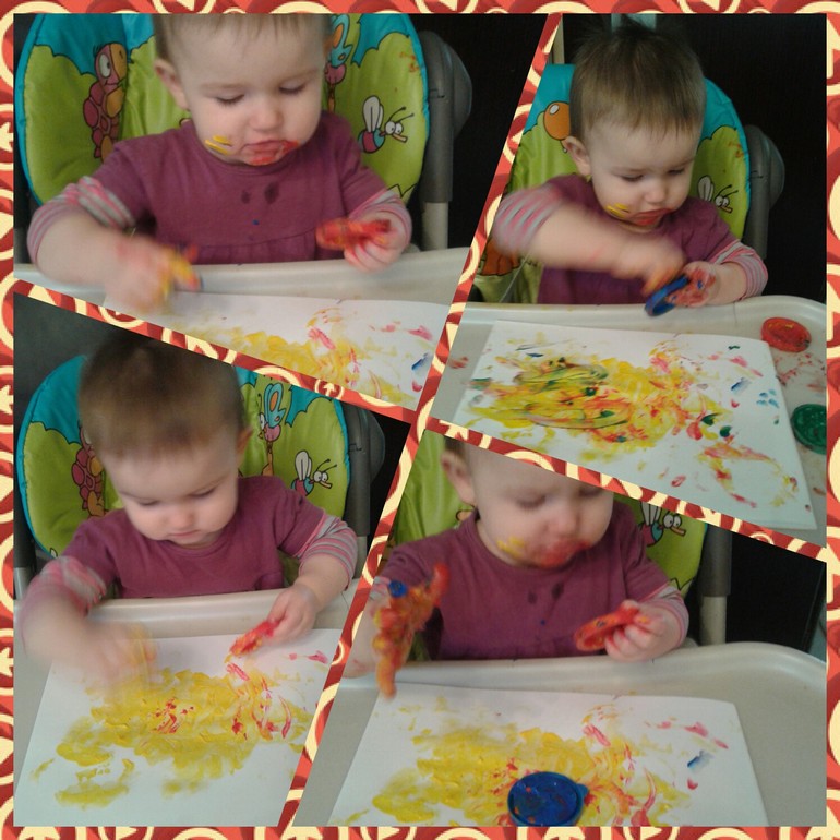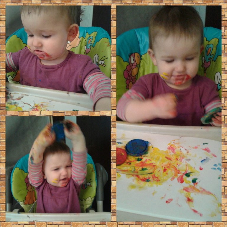 без того чтобы попробовать на вкус краску тоже не обошлось )))) А тут она вошла во вкус рисования...