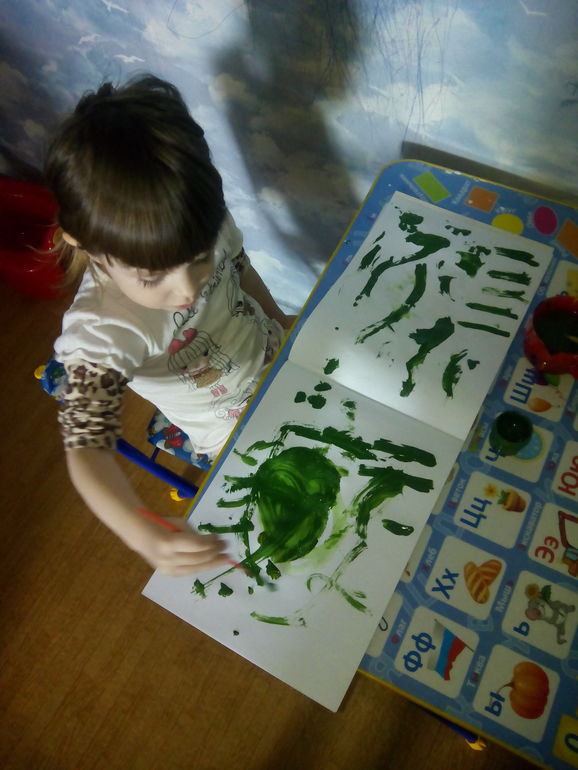Зеленый цвет. Учимся рисовать - палочки, стебельки, ну и в конце каляки-маляки...фантазия ребенка.