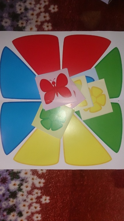 3. Пытаемся выучить цвета. Конечно пока сын сам не раскладывает. Я за него делаю, показываю и озвучиваю.