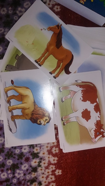 2. Карточки с животными, вытащила с методики 1. Просто показываю сыну, озвучаю кто нарисован и как говорит. Там очень много животных, но за раз конечно мы все их не смотрим)