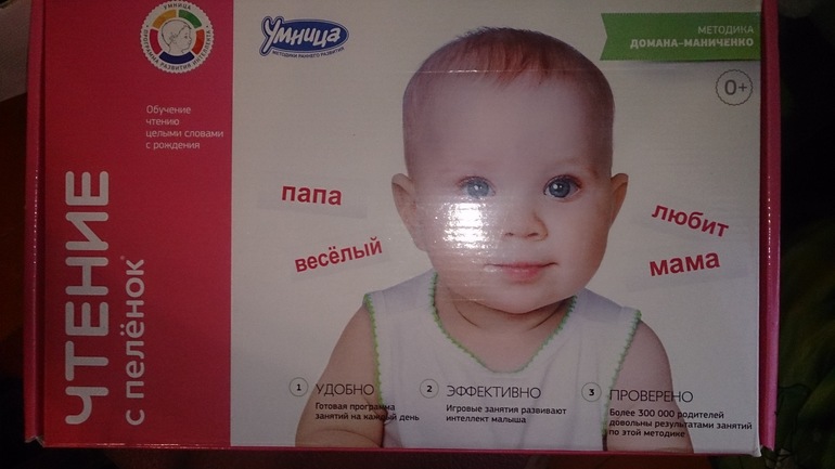 1. Методика Домана "Чтение с пеленок". Начали заниматься как и написано с 2х месяцев, но с перерывами. В общем сейчас это просто показывание карточек.