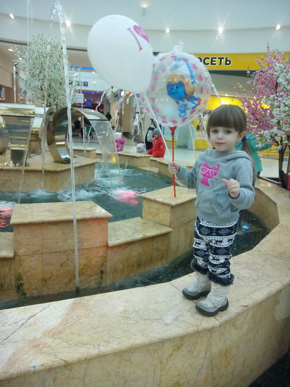 Итак, посидели в М, погуляли по магазинчикам, купили шарик, подарили один шарик, поразвлекались в развивающей комнате - Кристи очень понравился кинетический песок, там к нам присоединились наша подружка Ксю с мамой и папой...Время было 15.00 - а праздник так и не начался - обещали концерты, конкурсы и т.д. Тогда мы взяли еще на часик машину-каталка - такая вещь! легкая! большая сумка! Кристи и Я были в восторге)) В итоге ходили катались - смотрели на людей, магазины, подзависнули у фонтана - бросили туда монетку, чтобы вернуться...ггыыы...и в общем в 16.00 - собрались домой! Кристи уже начала капризничать, устала! И в машине через 5 минут - моя лялюся заснула!