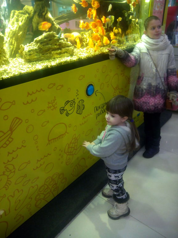 Огромный аквариум - можно за 100руб. покормить рыбок и в подарок дадут магнитик))