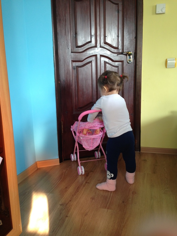 И конечно же надо сказать про полевые игры,я не думала,что они так рано появятся,однако! Алиса замучила бедного пупса,она пихает ему в рот все что найдёт,садит его в коляску,берет за горло и машет им по сторонам со звуками "ааааа"(наверное укладывает спать),чешет его безволосую голову,вытирает нос....прям мамаша!но злая,правда!с лёгкостью переворачивает коляску вверх тормашками и пупс с грохотом падает, вытаскивает и поднимает его Алиса исключительно за ногу,а если он отказывается ей петь,то получает ногой по голове. Я сразу же беру пупса и говорю,что так делать нельзя,ему больно,на что Алиса сердито и громко отвечает мне "дааааай",я не даю и тут получаю уже я😂