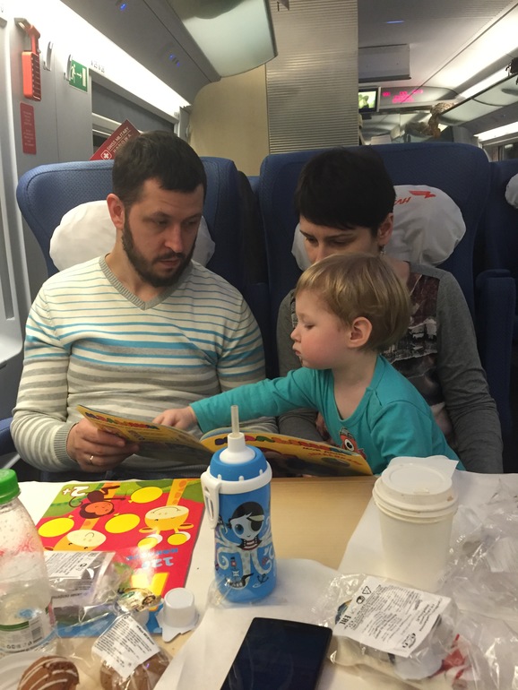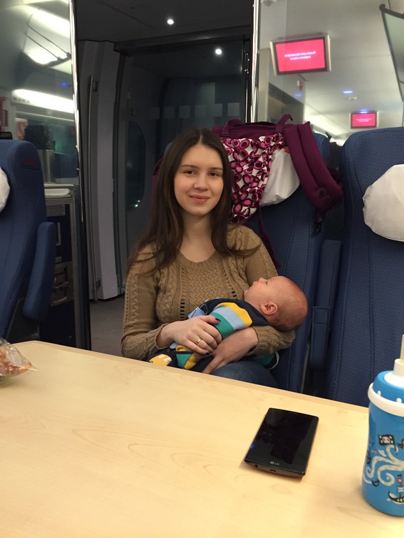 Путешествия с малышомВот и состоялась наша первая поездка в роли родителей погодок(ну почти погодок).решили мы посетить столицу нашей родины-Москву,по приглашению моего дедушки и его супруги.на момент поездки старшему 2.1,а маленькому 2 месяца(отправились на праздники,с 6 по 8 марта,в ту сторону в 7 утра на сапсане,обратно 17.40,вагон 10 "Аля детский",по факту кроме наших был ещё один ребёнок и все.с собой взяли ещё мою маму)