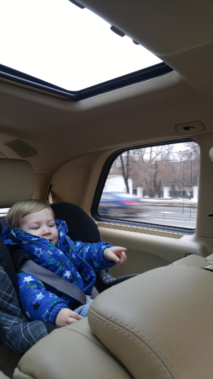 Поездка проходит отлично,Темка мирно спит,а Даня осматривается)