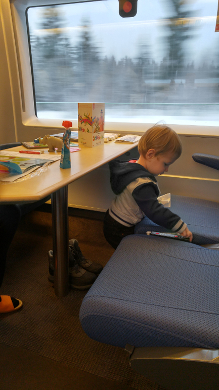 Для удобства купили 4 места,но нам повезло и на утренний поезд было мало людей, по-факту занили аж 8 мест(было где разгуляться,все таки 4 часа с двухлеткой с шилом в попе в замкнутом пространстве то ещё удовольствие)