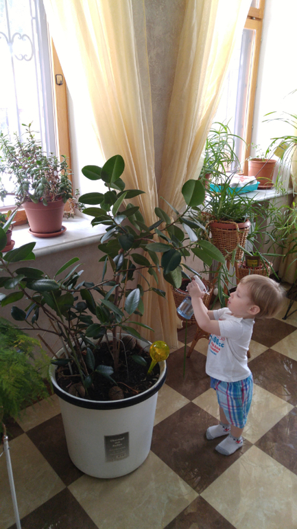 Приехали,переоделись и первым делом побежали поливать цветы(к слову,дома уже все растения залиты).