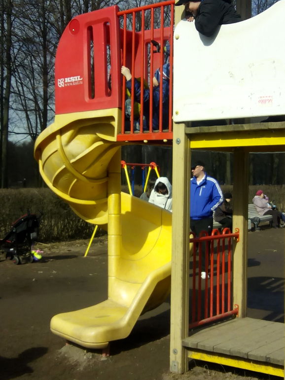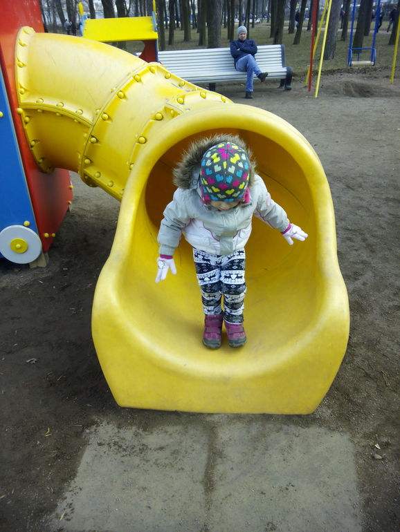 В общем дошли до лошадей, кататься отказалась, посидели передохнули и пошли на детскую площадку! Вернее опять бежали! Какие там крутые горки!! Но очень много деток, поэтому Кристи не долго там играла)