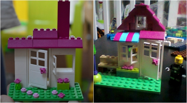 Еще любимец Лего. Лиза уже башни в свой рост строит из Дупло. А мы с Антуаном и иногда с папой кучу всего из Классик. Вернее, они кучу всего, а я только домики. Вот такие: